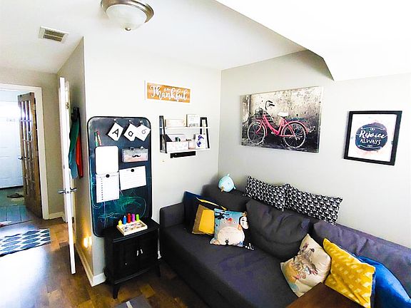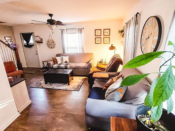 A Home right out of HGTV 4Bdrm/2Bth, 2Sty Home Move in Ready! INVITING Living Rm w/ Wide-Plank, Wood Laminate Flooring, beautiful Ceiling Fan, & Built-in Shelving. Kitchen boasts Wood Tile Flooring, Refinished Cabinetry w/ Undermount Lighting, granite countertops, trendy Fixtures, & modern glass tile backsplash. Kitchen is open to Dining Area that also has Wood Tile fllooring. Wide Hallway off Living Rm is the perfect office space & leads back to Main Floor Laundry Area. The main floor bedroom features rustic barn door for closet, Wood Laminate flooring, & Full Bath w/ Tile Flooring, Updated Vanity, & tiled surround shower. Staircase in Foyer leads to 3 Additional Bedrooms, all w/ HARDWOOD Flooring, and full 2nd Bathroom. NEUTRAL Paint Palette w/ White Trim and Carriage Drs throughout. Fenced Huge Backyard w/ Pergola, FIRE-PIT, & 2.5 Car Garage. Furnace and A/C Unit (2014) and Newer Garage Door w/ Opener.