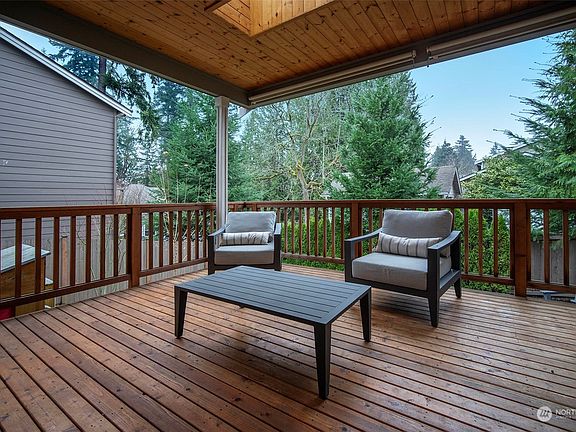 Well maintained & nicely updated home on quiet cul de sac. Main floor bedroom w/ full bath; great room living w/ laminate wood flooring; new carpets in upstairs. Large covered rear deck for year round enjoyment + fenced backyard w/ patio & play spaces. Abundant kitchen cabinet & quartz countertop space. Gas range, stainless appliances + large pantry. Great room living w/ gas fireplace & large dining area. Loft study area + 4 bdrms or 3 + bonus room. Spacious primary suite overlooks backyard. Soaking tub, separate shower, 2 sinks & large walk-in closet. Upstairs laundry rm too. Private community park; Northshore Schools & quick access to Burke-Gilman trail, parks + Seattle & eastside amenities. Pre-inspected for your peace of mind.
