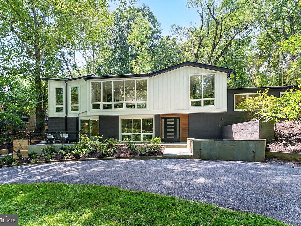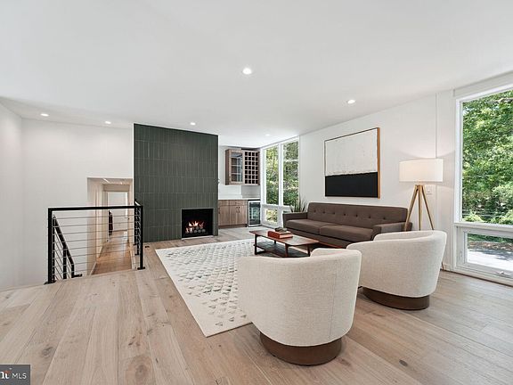 Absolutely one of a kind, this fully reimagined Hollin Hills mid-century modern masterpiece was originally designed by acclaimed architect Charles Goodman. The property has been meticulously expanded with an addition and thoughtful floor plan alterations to fit a modern lifestyle. It features five bedrooms, four full bathrooms, and three half bathrooms. The main entrance into the home is a large, welcoming entryway with a stylish terrazzo fireplace, storage, and guest coat closet. Continuing on this level, to the spacious family room with a wet bar and wine chiller, a private guest bedroom including a tranquil en-suite bathroom, and a generous walk-in closet. There is also a discreet owner's entryway from the side of the home that features a large coat closet, a built-in mudroom, and a stylish powder room. This level also includes a large laundry room with cabinets and counter space, and an extra storage room. On the next level, you'll find three bedrooms. Two of the bedrooms share a hall bathroom with a tub and dual vanity, while the third has an en-suite bathroom with a walk-in shower. Another half floor up, you enter the open floor plan living, kitchen, and dining space. The kitchen boasts modern flat-front cabinetry, a double-thick quartz waterfall island, and high-end JennAir stainless appliances. There is a large walk-in pantry with additional overhead dry goods storage. Floor-to-ceiling windows flank both sides of this wonderful open living/entertaining space, filling the area with light and giving the feeling of being nestled in the trees. There's a beautiful floor-to-ceiling ceramic fireplace, a dry bar with a drink cooler, and wine storage. An additional powder room off the kitchen completes this space. The large primary suite is set privately on the opposite side of the house from the other bedrooms. It includes two walk-in closets, a shoe storage closet, and an additional washer/dryer closet. The primary bathroom features a large wet room with a freestanding soaking tub, dual shower heads, a large dual vanity, and a water closet with a bidet-style toilet. The front and rear of the property have expansive flagstone patios, perfect for socializing with neighbors strolling past or hosting a private outdoor party. There is an additional finished detached structure on the property that is perfect for a studio, office, or gym, creating a private space for working or meditation. This property offers incredible privacy, with forested areas to the front and rear of this oversized lot. The size of the land leaves endless possibilities for landscaping or adding a private pool. Everywhere you look, you will find high-end finishes and attention to detail, from the designer ceramics to the white oak floors. Hollin Hills is listed on both the National Historic Register and is one of Fairfax County's Historic Overlay Districts. It is a community born out of both unique architecture and its long history of community building. It is a world unto itself in a bustling city. The mature trees provide the setting for the 450 Goodman-designed mid-century modern homes. There are seven parks in the community, several of which offer great hiking trails. There are many charming and nostalgic annual events, from the Fourth of July Picnic with sack races and egg toss to Oktoberfest with kegs and brats. Living in Hollin Hills can truly provide a unique Americana experience. Enjoy all that this community offers, including access to Hollin Meadows Swim and Tennis Club, Hollin Hills Pool, Hollin Hills Pickleball and Tennis Club, and Sherwood Hall Library.