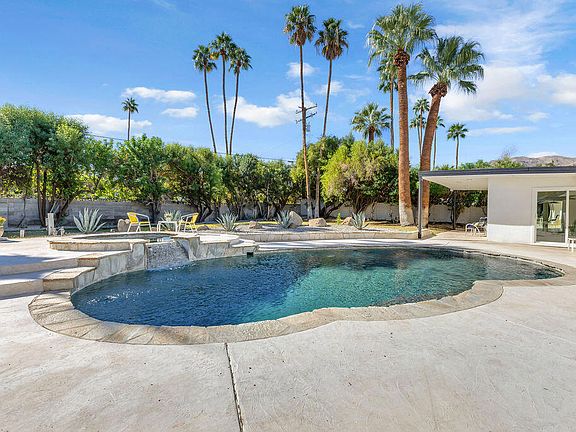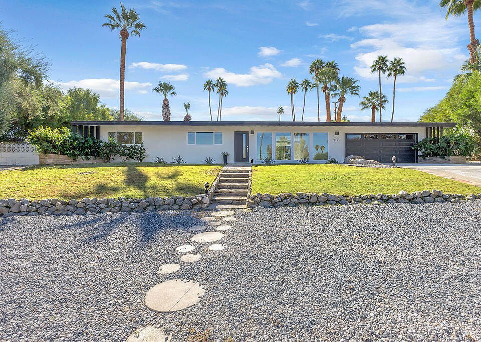 A rare find! This stylish 1957 mid-century home sits on more than a third of an acre on one of the best streets in south Palm Desert. The home has just been extensively remodeled and is ready for your cool furnishings! Large brand new double-pane floor to ceiling windows span the living area allowing for a spectacular view to the north. Elegant finishes include quartz countertops, luxury vinyl flooring, beautiful kitchen and bathroom tile, and all-new appliances. There are 3 bedrooms off the main living area and a large permitted bedroom/bonus room on the other side of the home. It was part of a later addition and has its own entrance door. The huge walled-in private backyard has gorgeous mountain views to the south and west. A sparkling pool and raised spa, and spacious patios, are a great place to relax and entertain. There is plenty of room for a potential outbuilding too.There is also a very large two-car garage. Prices are on the rise in this popular neighborhood with its proximity to El Paseo, College of the Desert, golf course and numerous fine restaurants and shopping. The seller is open to carrying a loan.