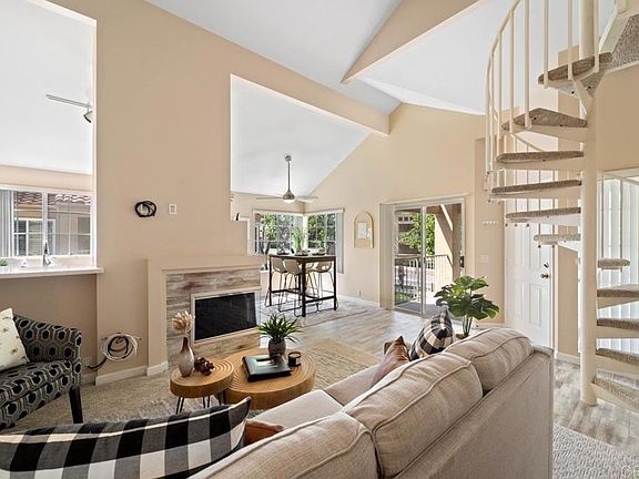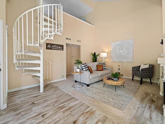 Welcome to this quiet, sunny, and bright 2-bedroom, 2-bath unit with a loft on the 2nd floor in the desirable Canyon Park Villas community of Mira Mesa. High vaulted ceilings enhance the openness, the kitchen flows effortlessly into the dining and living areas, perfect for entertaining or relaxation. A charming spiral staircase leads to a versatile loft space—ideal as a home office, guest area, or cozy retreat. The community boasts a large pool and spa, a sand volleyball court, and basketball court. Walk to beautiful Lopez Ridge park. Over 17 acres including a covered playground, basketball court, baseball field, and scenic canyon views. All located only a short distance to the beach, La Jolla, UCSD, and Qualcomm. Quick access to freeways.
