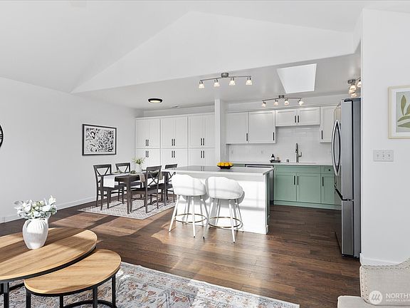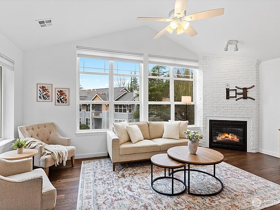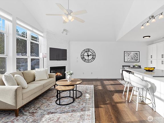 Daylight floods the home through oversized windows/skylights & the sunrise-facing balcony is a great spot for morning coffee. The living room & primary suite both have vaulted ceilings & nearly every surface has been updated w/ over 55k in key improvements. The opened kitchen brings quartz counters, full backsplash, upgraded cabinetry w/ new hardware, added pantry storage in the dining area & a newer oversized fridge. Engineered hardwood runs through the entire home w/ no carpet, paired w/ fresh paint, new thick trim, updated baths & top-down bottom-up blinds that balance light and privacy. Private driveway & one-car garage w/ guest parking directly across the street, plus laundry on the main level. Mins to Stanwood amenities & transit.
