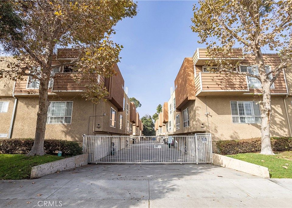 Welcome to this stylish and beautifully maintained townhome, offering resort-style living with a sparkling pool and spa, all within a highly desirable gated community in Van Nuys. This thoughtfully designed residence features two bedrooms and two and a half bathrooms across approximately 1,060 sq. ft. of comfortable living space. On the main level, you’ll appreciate direct access from the private two-car garage, a welcoming living room with a built-in display cabinet, attractive laminate flooring, a cozy gas fireplace, and powder room for your guests. The spacious dining area flows seamlessly into the bright and charming kitchen, which boasts generous cabinetry and counter space — perfect for both everyday living and entertaining. Upstairs, the primary suite is bright and airy, featuring a generous walk-in closet with a stylish barn-style door and an upgraded ensuite bathroom complete with a new vanity, soaking tub, elegant floor-to-ceiling tile, and all new fixtures. The secondary bedroom is equally inviting, offering mirrored closets and access to a nearby hallway bath showcasing a modern stall shower, updated vanity, and contemporary finishes. Additional highlights: optional third designated parking spot, all new vinyl windows, a new roof, laminate flooring throughout, and central heating and air conditioning for year-round comfort. Set within a well-maintained gated community, residents enjoy access to resort-style amenities including a sparkling pool, relaxing spa, and beautifully landscaped common areas. Ideally situated near popular dining, shopping, parks, schools, and with convenient 405 Freeway access, this townhome blends contemporary comfort with an unbeatable location — offering the perfect combination of style, privacy, and convenience.