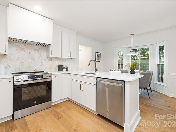This charming home in South Charlotte has undergone a complete cosmetic overhaul by the Dapper development team. It boasts a fantastic location surrounded by million-dollar homes and is just a stone's throw from Colony Place Shopping Center. As you approach the property, you'll immediately appreciate the thoughtful design featuring brand new bronze windows and stunning copper gutters. Step inside to discover a beautifully renovated kitchen equipped with soft-close shaker cabinets, quartz countertops, a custom tile backsplash, a custom wood hood vent, and stainless steel appliances.The bathrooms have also been completely transformed, showcasing all-new custom tile, vanities, and fixtures. The oversized primary suite and its bathroom are sure to impress. Additional updates include new engineered hardwood floors, fresh paint inside and out, and modern plumbing and electrical fixtures. The property also features a deck out back and a two-car garage, making it an all-around perfect home!