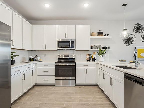 Covered patioPrivate primary suiteWhite cabinetsSatin nickel hardwareMeridian grey quartz countersGourmet kitchenStainless-steel appliances