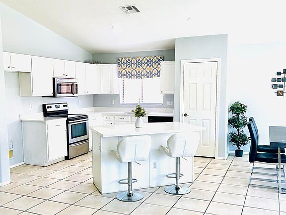 This spacious gorgeous 3 bedroom, 2 bathroom home welcomes you to the open concept floor plan. The home features vaulted ceilings offering great natural sunlight. your beautiful eat in kitchen offering brand new marble granite countertops for kitchen island, splendid match with the crisp white cabinets. The master bedroom has a walk-in closet, new granite dual sink vanity, separate shower and soaking tub! Additional office space/gaming center available! Spacious back yard with a covered patio and extended pacer patio with plenty of space to entertain. Both front and back yard is synthetic grass, which means low maintenance! Don't miss out on this fantastic home!