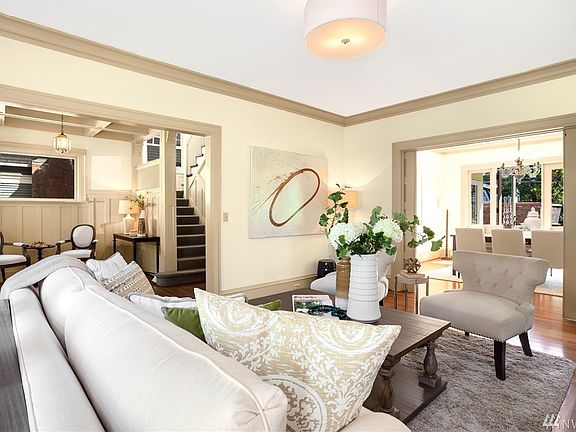 Exquisite 1905 Foursquare nestled on one of Cap Hill's most coveted tree-lined streets! A welcoming porch leads to elegant millwork, gracious living spaces, 9' ceilings, eat-in bay kitchen, French doors, hardwoods. Quality upgrades, orig character & natural light. Circular floor plan boasts lg master, 3rd fl skylit guest/flex space & permitted, fully appointed extra living/income unit on lower level. Beautiful gardens, 2 decks, 2-car garage. Minutes to bustling 15th/19th Aves, parks, schools.