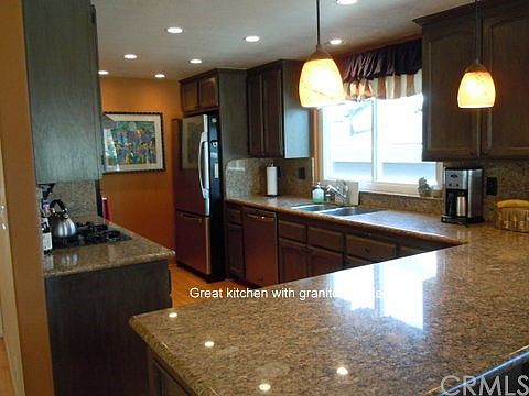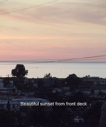 Enjoy beautiful ocean and sunset views from this remodeled and upgraded great family home of over 2150 sf located west of PCH on low traffic, "no through" street. Lovely stone planters and tiled wall lead the way to a double door entry, travertine floor first level with two bedrooms, full bath, built-in cabinetry in hallway, and French doors to large patio and back yard with mature landscaping. Top floor features open, spacious living areas, Bay window and built-in seating, high pitched vaulted beamed ceiling, hardwood floors, brick fireplace, and front deck. The kitchen/dining area is perfect for gatherings of any size, and kitchen features granite counters, generous cabinetry space and adjacent walk-in pantry. The powder room off the hall has a gorgeous stone wall, decorator vanity and skylight. There is a spa-like master bath featuring Italian tile wall, soaking tub, double sink vanity, separate shower and skylight in a spacious master suite with walk-in closet, ancillary clothes closet, Marble surround fireplace, and French doors to large ocean view Trex deck. Other features include decorator lighting and custom shutters. Walk the dog, jog, or stroll on nearby "chip trail" and enjoy nearby Hermosa Valley Park. A great find in the Hermosa Hills