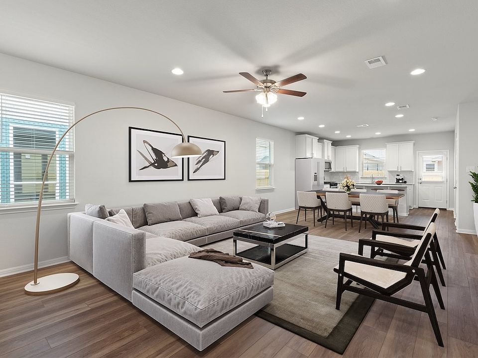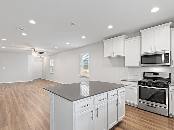 Modern, efficient, and designed with comfort in mind, 732 Backstays Loop brings the Crescendo floor plan to life in the heart of Crosswinds. This single-story home offers 3 bedrooms, 2 bathrooms, and 1,537 square feet of living space with an intuitive open layout that blends the kitchen, dining, and family room into one bright, connected space. The kitchen features a large center island, quartz countertops, a walk-in pantry, and stainless steel appliances. The primary suite includes a spacious walk-in closet and dual vanities. With stylish wood-style flooring, a covered patio, and access to all of Crosswinds top-tier amenities, this home is ideal for buyers seeking simplicity without compromise. Images and videos might feature a similar home.