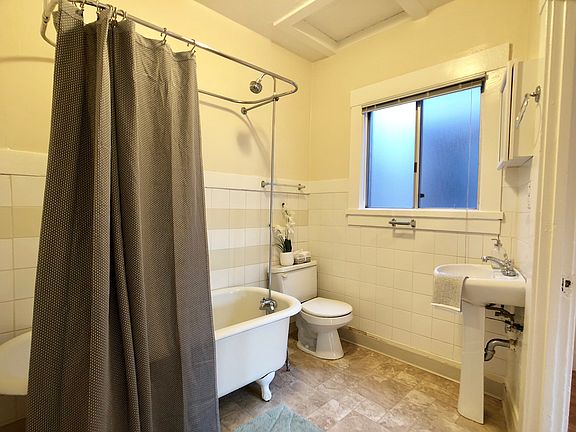 Your pets are welcome at this cute and cozy cottage in a friendly community next door to a large park, the dog park, and the beach. There are multiple cottages on the property and each cottage is divided into 4 units. This one bedroom apartment (#1) has hardwood floors, a cute remodeled kitchen with gas stove, full bathroom with vintage clawfoot tub, and two small rooms large enough for a queen size bed (sorry a King bed won't fit in the bedroom space.) One off street parking space is included, and there is coin laundry on the property. Owner pays water and garbage. Available now for move in within 2 weeks.