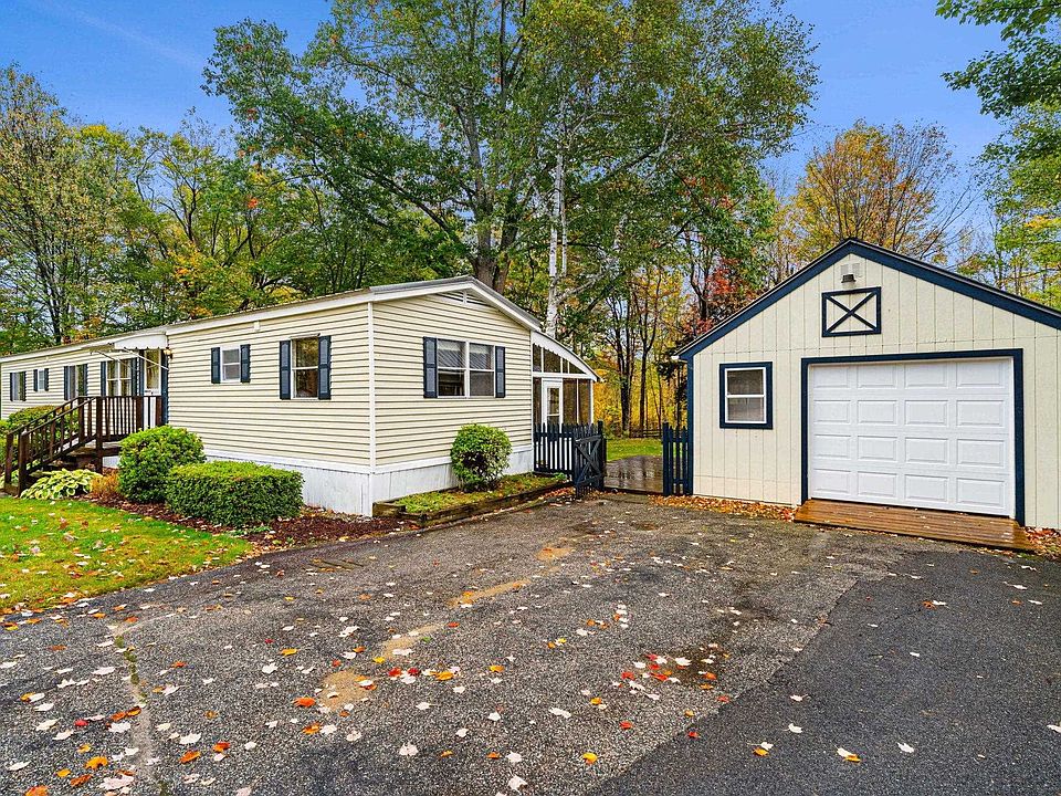 WOW! This home is AMAZING and is quite possibly situated on the very best lot in all of Sugar Hill Manor! Come see this beautiful 2 bedroom / 1 bath home! This home features an updated bathroom, gas range, in-unit washer and dryer, a separate dining room, newer flooring and some updated windows. But wait, there's more -- also included is a 3-season screened porch, a garage, two sheds and a very private, beautifully landscaped backyard! The low park fees covers your sewer, water and trash. Pets okay! Located on Route 77 / Concord Stage Road, this home is convenient to Route 89 and Concord! Showings to start at the Open House, Sat 10/11 from 11-1!