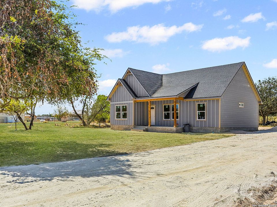 Over half an acre with a new build at this price? Say less. This stunning 3-bedroom, 2-bath modern farmhouse sits on 0.66 of an acre with beautiful country views and an estimated completion date of early December. The home features an open layout with soaring ceilings, sliding glass doors, and no carpet throughout. The kitchen includes quartz countertops, and the primary suite offers a large walk-in shower. Buyers will have the opportunity to select cabinet and flooring colors for a personalized touch. Enjoy peaceful living with NO CITY TAXES, NO HOA, and a convenient location just minutes from I-35.