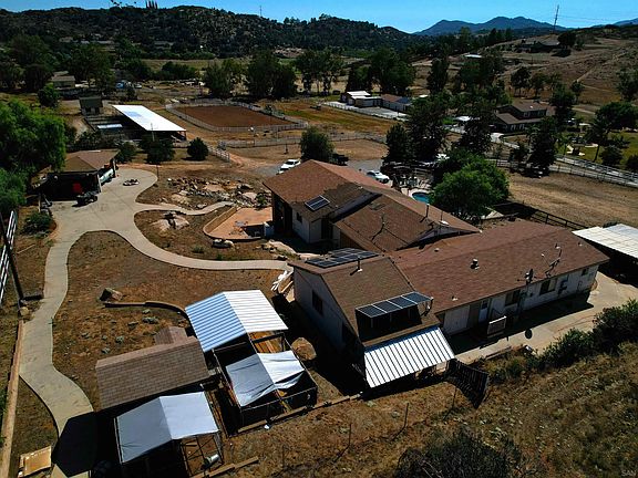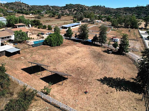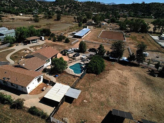 An animal & entertainers DREAM property complete w/ amazing sunsets! Horses, chickens, goats, pigs, dogs, cats – this property is set up for your multi-family farm! This 5-bed, 3-bath 3150 sq ft home sits on 4.9 acres of FLAT land w/ 44 PAID SOLAR PANELS! Want to entertain? Plenty of room for that on your new 700 sq ft deck -OR- the 2000 sq ft separate covered patio area w/ fire pit. Or take a swim in your 18K gallon pool. Horses? Complete w/ Shed Row Barn w/ heavy duty covered cross ties/wash rack w/ 12x12 tack shed w/auto water, lights & Semi Truck Access! A 52-ft round pen with 190 x 90 Arena! Additional graded area for added stalls. Plenty of pasture space! Plenty of riding trails! LARGE chicken coop, multiple dog runs & more! This property is fully fenced with Electric Security Gate. Need additional Storage or Workshop area? It has room for that too! AND RV parking w/ hook-ups! Enjoy the orchard of oranges, lemons & more w/ plenty of space to add a greenhouse or ADU if you like! This private family farm is located only 5 minutes from town!
