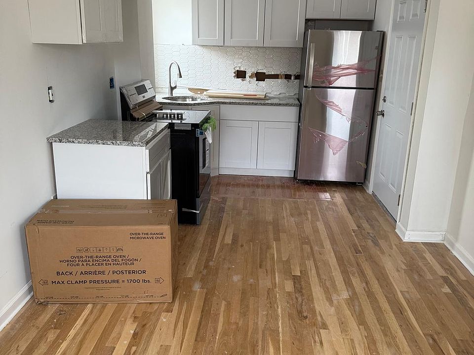 Beautifully Fully renovated 2-bedroom, 1-bathroom apartment for rent on the first floor of a private home. Just minutes from public transportation, highways, shopping, and amenities. Credit score of 645+ is required. 3x rent, parking, and patio available for a fee. 1 Year Lease, Heat and hot water are included. The tenant is responsible for electricity and cooking gas.