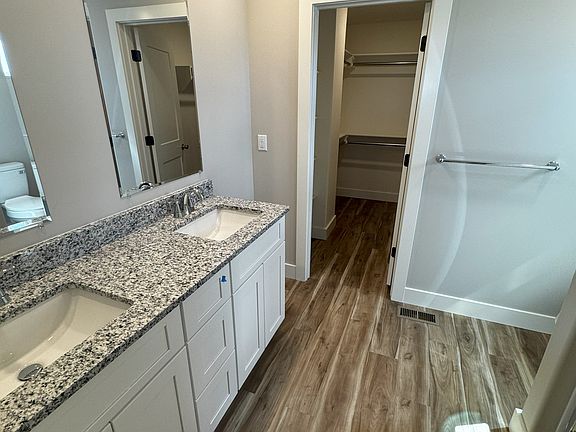 Laundry areaGranite countertopsModern kitchenMaster suitePrivate bathDouble vanityPlenty of natural light