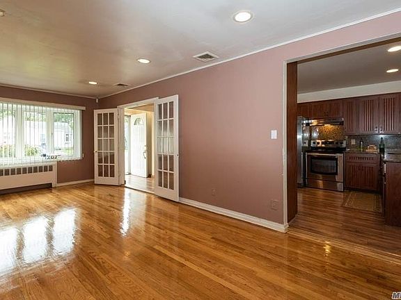 Beautiful 4 bedroom 2 bath home in the Barnum Woods section of East Meadow. Updates include HUGE Family room extension,2 year young granite kitchen, banquet sized dining room (great for entertaining), wood floors throughout, brand new compressor and finished basement w/storage galore! Backyard is all paved & fenced in. Garage is perfect for working at home (or hiding) , complete w/electric, heat and A/C. Taxes are shown w/o STAR savings of $1197.83