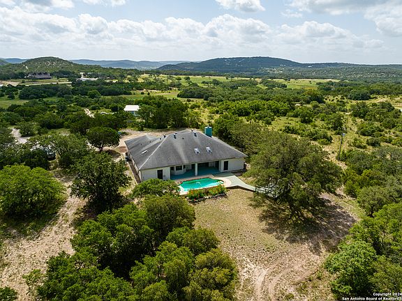 Discover a unique opportunity to own 47+ acres near the State Natural Area, a 5000-acre equine-friendly State Park. This exceptional 3-bedroom, 2-bathroom, 2,365 sq ft brick home is situated on a high point of the property, offering stunning views overlooking the state park. The home features an open floor plan with 12-foot ceilings and porcelain flooring throughout. The living room boasts a fireplace, and both the master suite and living room open onto a covered back porch and swimming pool, providing a perfect setting