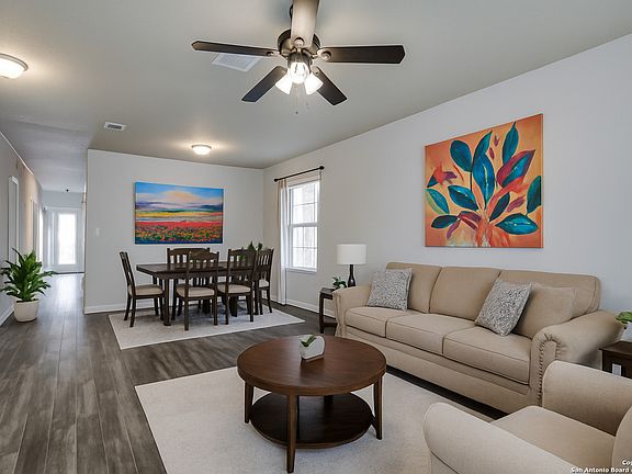 Welcome to this inviting single-story home featuring a bright and open floor plan designed for comfort and functionality with NO carpeting! A beautiful bay window fills the living area with natural light, creating a warm and welcoming atmosphere. The spacious layout offers seamless flow between the living, dining, and kitchen areas-perfect for everyday living and entertaining. Step into your private outdoor retreat-this spacious backyard features a large covered deck, perfect for relaxing in the shade or entertaining. Step into your private outdoor retreat-this spacious backyard features a large covered deck, perfect for relaxing in the shade or entertaining year-round. Whether you're hosting a barbecue, enjoying morning coffee, or watching the sunset, this versatile outdoor living space offers comfort, style, and plenty of room to unwind. Enjoy the convenience of a prime location with quick access to IH-35, Randolph Air Force Base, and Fort Sam Houston. Whether you're commuting, running errands, or exploring nearby amenities, this home puts you right where you need to be.
