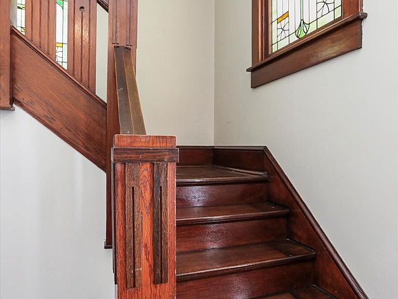 The photos tell the true story. This rare gem is a meticulously cared for home and is truly as gorgeous as the pictures look. The 10 feet high ceilings enhance the abundent natural light that flows in from the tall windows allowing the gleaming hardwood floors to shine. The woodwork and stained glass in the foyer add elegance and old-world charm to this exquisite home. An 8x16 covered front porch overlooks beautiful landscaping and invites you to sit back and relax with your favorite beverage and a good book. Garage and full basement offer plenty of additional storage. The property line extends past the left side of the driveway and includes the shed at the back of the lot. Back of the property is acessible from the alley.