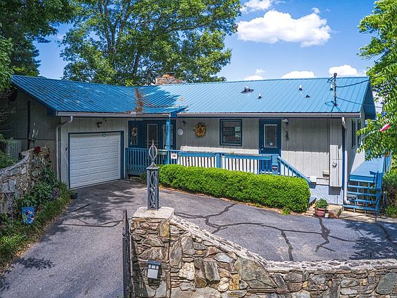 Exceptional VIEW with spectacular sunrises! 2 Master Suites on the main level then a BONUS master suite in the fully finished basement. The main floor includes a country kitchen with custom wormy chestnut cabinets and walk-in pantry/laundry. The 32x22ft great room has a wall of window to enjoy the view and a stone, gas log fireplace, hardwood floors, leading out to the wrap-around deck. Both bedrooms on the main floor have private baths. - - - The fully finished basement includes a woodstove, walls and ceiling lined with antique wood and slate floors (Bar and Kitchen) from an old schoolhouse, the slate was the school chalkboard - extra cozy and welcoming. Perfect for 2nd living/guest quarters, with master suite, and another large porch. 2 garages - one is attached, the other detached. Spectrum is nearby and can be connected for no extra installation costs.