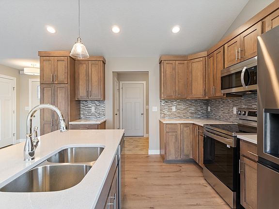 You will love this stunning 3 bedroom, 2 bath home that features open floor plan with vaulted ceilings and a 3 car garage. The kitchen has granite countertops, stainless steel appliances and soft close drawers. You will love the large primary suite with walk in closet and private bathroom. This beautiful home is located on 2.19 acres just outside of Hudson. Unfinished walk out lower level waiting for your finishing touches. Builders warranty included.