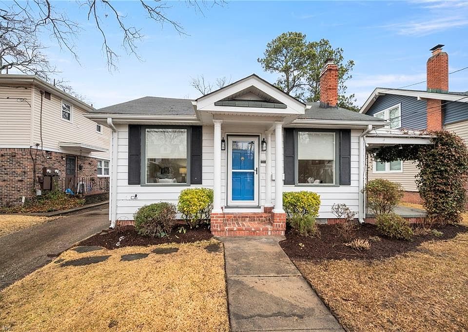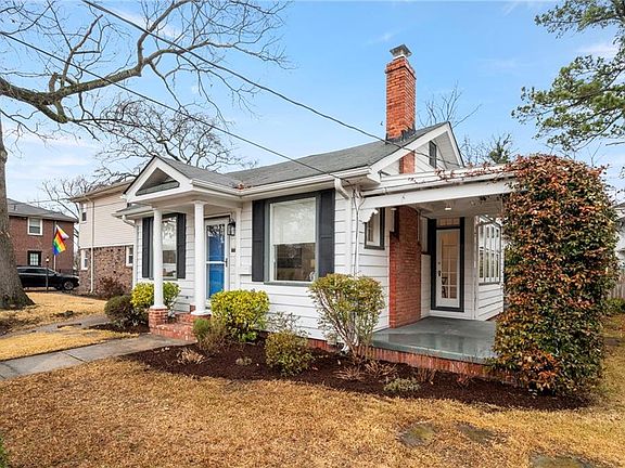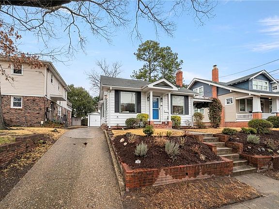 Beautifully maintained single-story Colonial Place bungalow blends character with modern conveniences: freshly painted, re-finished hardwood flooring, crown molding, renovated kitchen with white shaker style cabinetry, stainless-steel appliances, granite countertops, plus refreshed bathroom in 2019 & water-efficient toilet. Large windows & gridded glass doors fill home with natural light, while the spacious living & dining areas are perfect for entertaining! Both bedrooms boast high ceilings and crown molding. Additional features: updated electrical 2024, asbestos abatement, new foundation footing 2025, chimney cap & repointing 2024, tankless water heater, new garage door, radiators & boiler removed for added space, spacious utility room and garage provide ample storage space. Enjoy the jasmine-draped side porch & easy access to Knitting Mill Creek, North Colley’s vibrant shops and restaurants, and a quick commute to ODU, military bases, and downtown. Over $25K in recent updates.