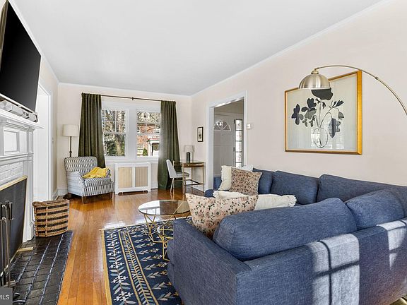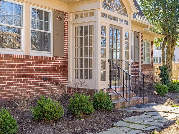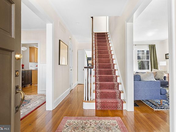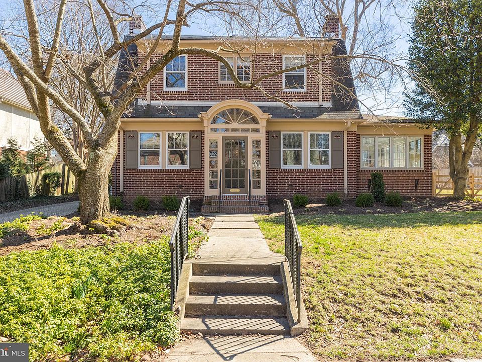 This is the home you have been waiting for in Wawaset Park. 732 Nottingham Road combines classic historic, architectural elements with mid-century modern touches that create a sophisticated, yet warm and inviting home. Renovations were completed last year with an eye for quality and detail, keeping the best of the old and seamlessly combining it with the new. A welcoming foyer leads to a living room with a wood-burning fireplace on the right and dining room with wainscoting on the left. Adjacent to the living room is the sunroom/Florida room with updated Andersen windows, new carpet, a rear entrance to the backyard patio, and built-in bookcases. The eat-in kitchen is flooded with natural light from three sets of French doors leading to the backyard with brick paver patio. The kitchen features solid surface Corian countertops, a gas oven/range, built-in microwave, dishwasher, disposal, and a refrigerator, plus an abundance of cabinet storage. A brick-floored breezeway connects the kitchen, family room, and foyer hallway. A powder room with a patterned tile floor is located between the kitchen and family room. The family room has a second wood-burning fireplace, recessed lights, floor to ceiling window treatments and built-in bookcases. The mudroom, just off the kitchen, has a brick floor, plenty of room for coats, and access to the driveway. There are 4 bedrooms and 3 full bathrooms on the second floor. The primary bedroom features custom wainscoting and hardwood floors, an ensuite bathroom with soaking tub, tile floor, vanity with marble countertop, and a separate shower with frameless glass doors. The rear hallway provides multiple floor-to-ceiling closets and the third bedroom includes a cedar closet. The fourth bedroom has an ensuite bathroom with a shower/tub combination. The laundry is located in the basement along with exterior steps leading to the backyard, and a potting room with utility sink. The home is complete with a Security system, gleaming hardwood floors on the first and second floor, designer light fixtures, custom wainscoting, window treatments, central air conditioning, new gas boiler, hot water heater in 2022, are just a few of the interior features. Exterior features include an enormous fenced in back yard (new fence 2022), brick paver patio, driveway, and separate 2 car garage with pulldown staircase to access additional storage above. Don't miss the opportunity to see this special Wawaset Park home with many recent systems updates and improvements plus the classical charm and modern convenience.