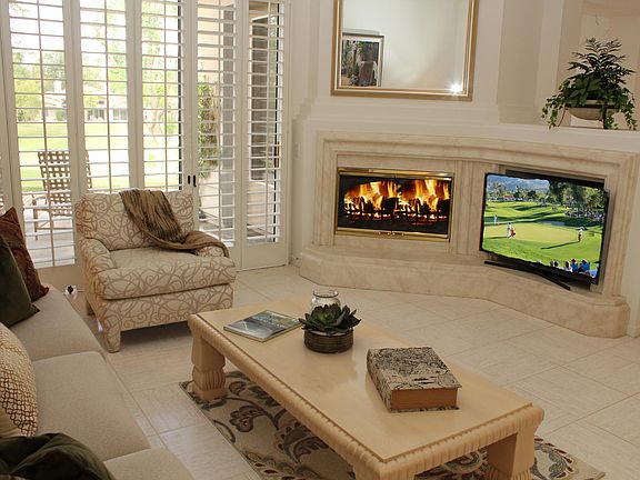 Move In Ready! You just found the Luxury Desert Lifestyle you've been looking for right here in the Heart of Palm Desert. Welcome to Indian Ridge Country Club! This Lock and Leave Condo is Bright with Natural Light and has a free flow from inside to Outdoor Living with Walls of Glass Opening to Outdoor Living with Panoramic Fairway, Lake and Mountain Views. This is an Easy, Great Room floor plan with Open sight lines, Volume ceilings, Wet Bar and Crackling Fireplace creating a warm & inviting atmosphere. The Chef's Kitchen is bright and has been updated with all new stainless appliances. With over 2,000 Sq Ft, featuring 2 Master Suites and large Den with Sleeper Sofa and private Bath - you can invite both Family & Friends, this home is designed for Entertaining, come for the weekend - stay for the season. Start your morning with a quick round of golf or tennis, then home for a Lazy Afternoon floating in the pool as the day winds down, friends stop by for a glass of wine to watch the sun set, then it's off to dinner. An Easy Resort Lifestyle, close to World Class Golf, Tennis, Hiking, Restaurants, you name it! Life just doesn't get any better than this!