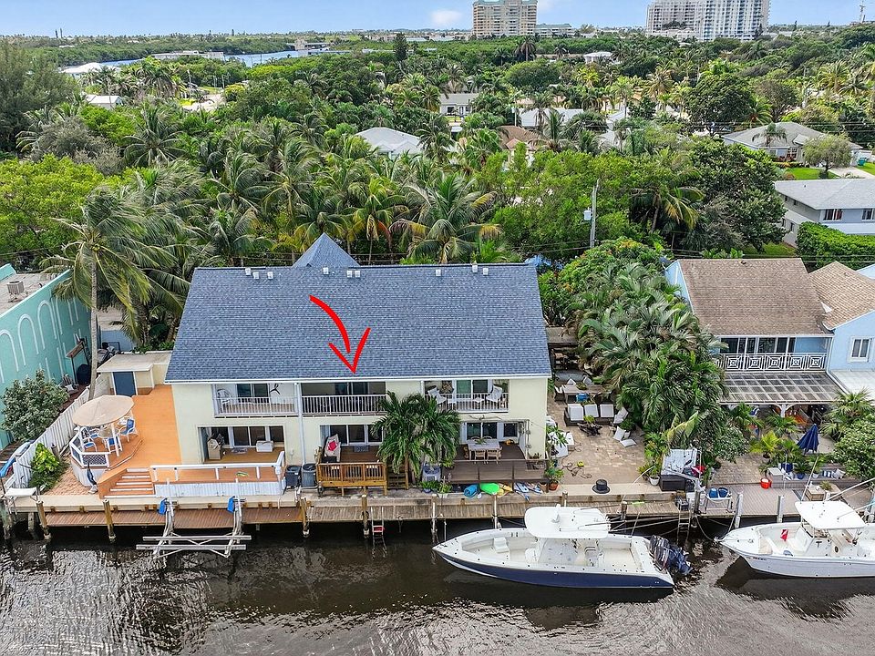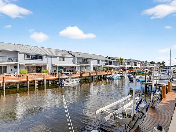 True waterfront living in this beautifully renovated 2-bedroom, 2.5-bath intracoastal townhome featuring a deeded boat slip and 20 feet of private dock space. With no HOA and no fixed bridges, this rare property offers effortless access to the open ocean--just steps from your back door.Step inside to find a beautifully renovated interior (2019) showcasing travertine floors, crown molding, and coastal-inspired finishes. The kitchen is both stylish and functional, featuring solid wood cabinetry, granite countertops, a subway tile backsplash, and stainless steel Whirlpool appliances. French doors open to a charming front porch, perfect for grilling or dining al fresco, while the spacious living room extends to a covered patio overlooking the canal and your private boat slip ideal for relaxing or entertaining. Recent upgrades include a new roof (2017), hurricane-impact windows and doors, and a Trane A/C system (2022) for comfort and peace of mind. Perfectly situated less than half a mile from the Boynton Beach Inlet, you'll enjoy direct ocean access and short boat rides to favorite waterfront destinations like Beer Can Island, Banana Boat, Two Georges, and Deck 84. Nestled on a quiet private road, the property is surrounded by lush tropical landscaping, privacy hedges, and features an oversized driveway with ample parkinga perfect blend of luxury, leisure, and coastal charm. With no HOA restrictions, there are no rental, parking, or pet limitations, making this an exceptional opportunity for investors seeking short-term or annual rental income as well as those looking for a private coastal retreat.
