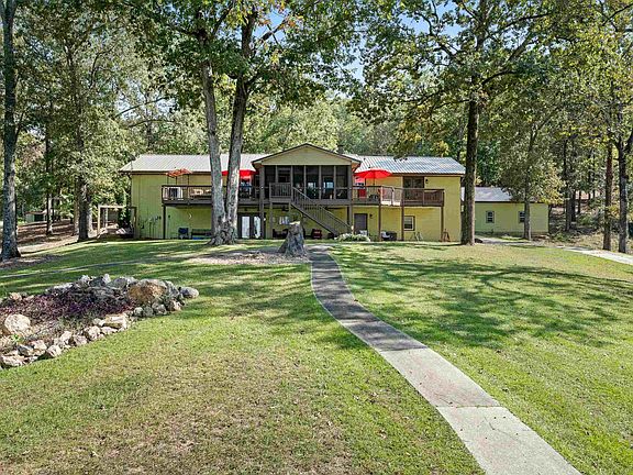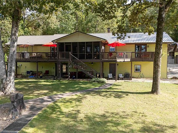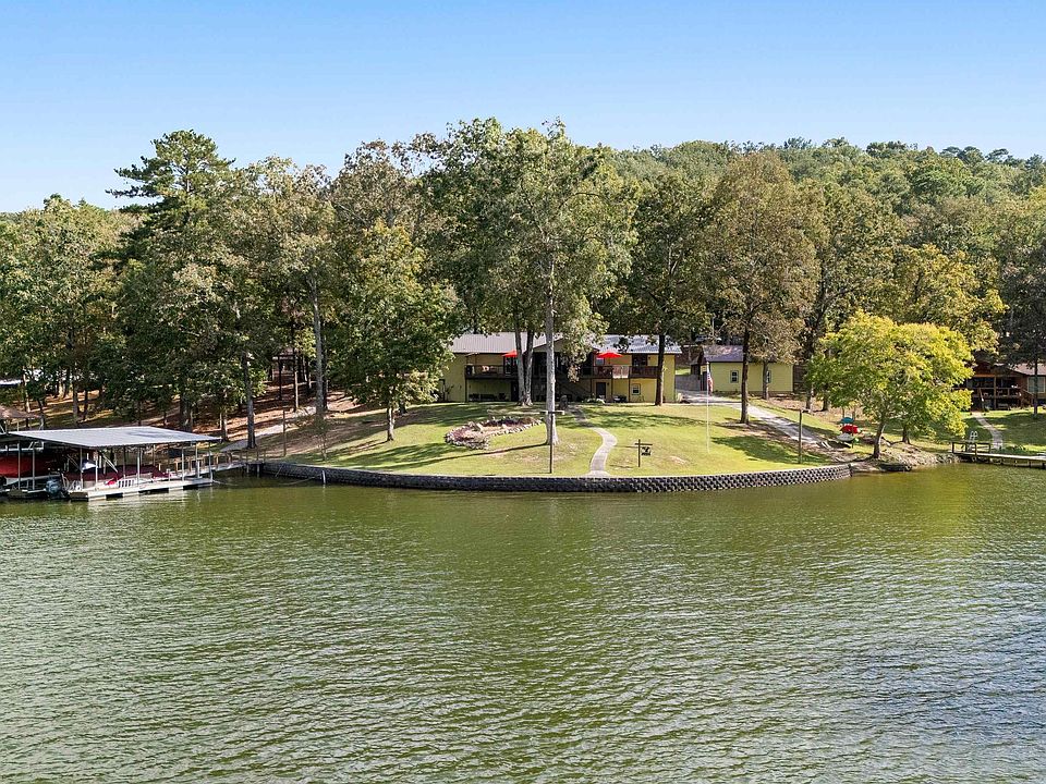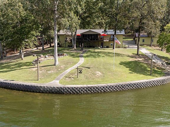 Beautifully renovated in 2020, this stunning waterfront property offers year-round water access on a large, level lot with 280 ft of shoreline. Enjoy a 2-slip floating boathouse with lift, boat launch and “Spider Be Gone” systems on both the house and boathouse. The home features 6 garages, workshop, safe room, screen porch, open decks, and covered patio—perfect for outdoor living and entertaining. Inside, you'll find real hardwood floors, two full kitchens, two laundry rooms, custom cabinetry, lots of closets, an office nook and a possible studio apartment. 3 bedrooms & 3 baths. This property is the ultimate in luxury lakefront living.