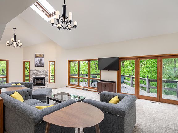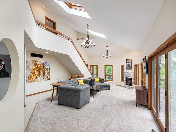 What a way to start/end your day. This custom built house has everything to offer for its next owner. Waterfront access to the Dupage River, walkout basement, wrap around deck, set perfectly on a large lot where the river and the road are far enough away. Just one look inside with the vaulted ceilings, windows and skylights offering plenty of natural light, a loft, maple cabinets with granite countertops, SS Appliances, 2 fireplaces, almost every bedroom has its own private bath (3 out of the 5 bedrooms), and with the endless entertainment possibilities you will already feel at home. This home is move in ready for sure.