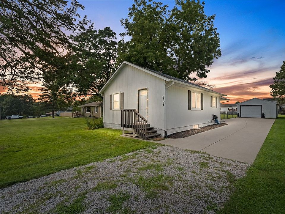 Additionally, the detached garage provides not only parking but also extra storage space or a potential workshop area.