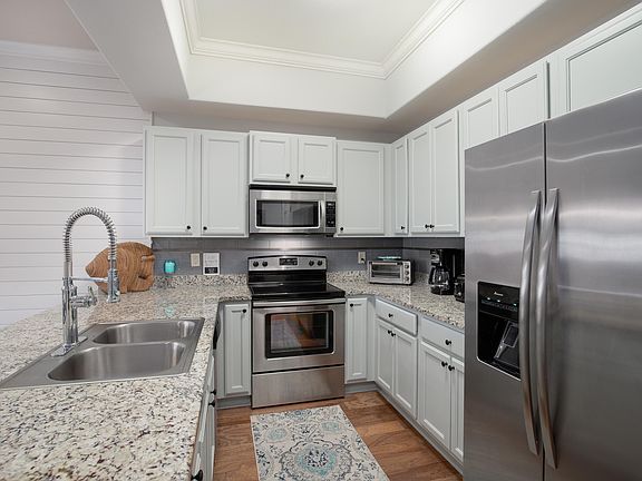 Discover ''Toes In The Water'', a beautifully updated ground floor retreat in the gated Alerio community, perfectly positioned just across the street from public beach access and the crystal clear waters of the Gulf. This 3 bedroom, 2 bath condo sleeps 8 and offers the ideal blend of modern comfort and coastal charm, perfect as a full time residence, a second home, or a short term vacation rental. Step inside to find an airy open concept layout with 10 foot ceilings, shiplap accents, and stylish, soothing decor that immediately sets the tone for a relaxing stay. The inviting living and dining areas flow seamlessly into a well appointed kitchen featuring stainless steel appliances, granite countertops, and a large island that brings everyone together. The covered patio invites you to unwind and enjoy the gentle Gulf breeze after a day in the sand. The spacious primary suite is a serene escape with a king bed and spa inspired ensuite featuring double vanities, granite counters, a soaking tub, and a separate shower. Two additional guest rooms, one with a queen bed and one with a twin over queen bunk, offer welcoming comfort for family and friends. Guests can enjoy Alerio's resort style amenities including a heated pool, hot tub, kids splash pad, and BBQ area, all just minutes from Silver Sands Premium Outlets, coastal dining, and local attractions. HVAC replaced Spring 2025. Seller is a licensed Real Estate Agent in Maryland.