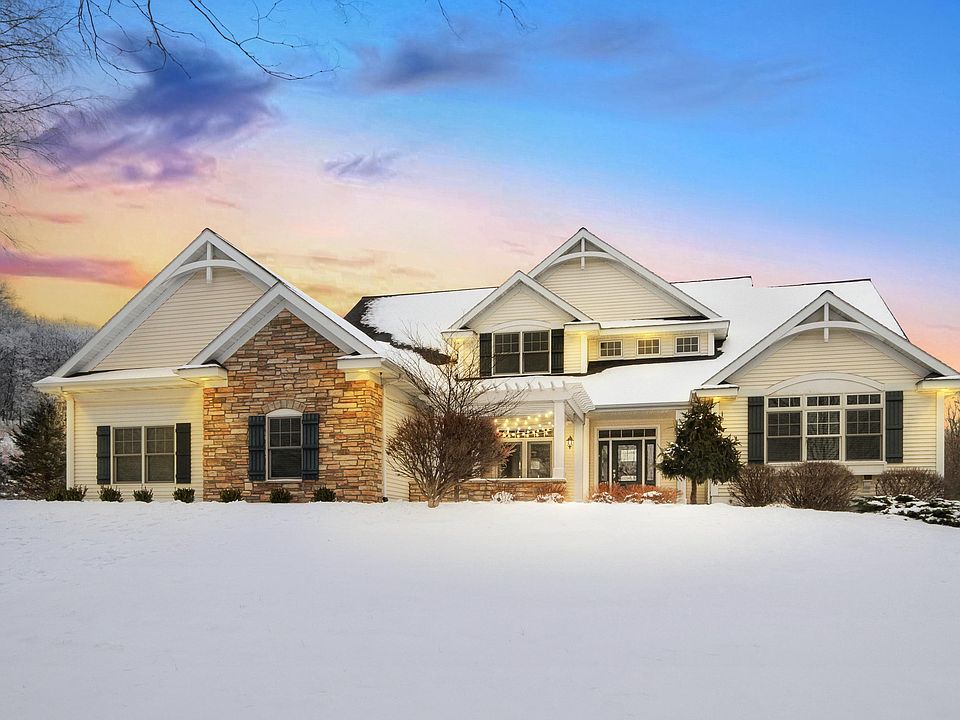 Beautiful one owner, custom built home in the sought after Clearwater Farm neighborhood. Well designed floor plan w/thoughtful outdoor spaces to enjoy to the valley views & privacy of the backyard. The grand entry welcomes you into the home, w/ the main floor offering formal dining, living room w/ a natural fireplace & floor to ceiling windows to take advantage of the view of beautiful backyard & continues into the home office. The gourmet kitchen includes a hearth room & additional dining space that leads to the deck & patio. Finishing off the main floor you will find a convenient 1/2 bath, mud room w/ laundry off the 3 car garage & the luxurious master suite. The upper level hosts 3 spacious BRs & bath. You will love the LL w/daylight windows & the additional living space it has to offer