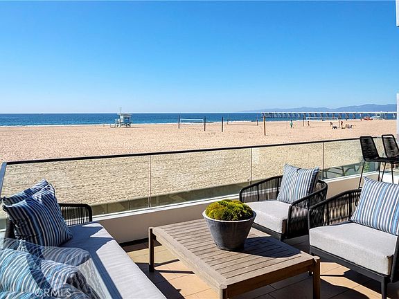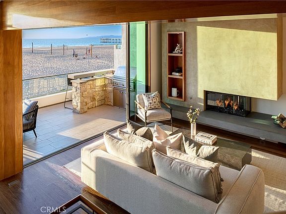 A true architectural residence where you can indulge in the surf, sand and sea each day while living on the famous Strand in Hermosa Beach. This oceanfront home for sale, approximately 3,400 sq-ft with 4 bedrooms and 3.5 bathrooms, was crafted by award-winning Modernist architect Michael Lee and luxe coastal builder Dave Baldwin. Smartly designed to offer different experiences depending on your mood, from low-key family living to fun beachfront entertaining. This 3-story home is located along a quiet stretch of the Strand, but only 5 minutes on foot from Hermosa Beach Pier. A special real estate offering where main living spaces, including kitchen, dining room and family rooms, feature soaring 180-degree views of the coastline, from Malibu to Catalina Island. Style highlights include a sleek, open floorplan warmed in exotic Golden Teak wood, plus technical comforts like home automation, radiant heat and soundproof walls and floors, and floor-to-ceiling Fleetwood glass on each level to keep you connected to the beach. Lots of privacy too, since passersby can’t see indoors on the 2nd and 3rd levels of this Hermosa Beach property. Take the elevator to the top floor and kick back in the primary suite—a peaceful retreat where you wake to white-tipped waves and luxuriate in sea breezes on your private balcony. The master bathroom features a dual walk-in shower and a retractable skylight where you can count stars at night while soaking in the tub. Easily arrange intimate sunset get-togethers on the spacious 2nd floor balcony with a built-in grill station, or weekend parties on the 1st level, where a bright recreation room seamlessly merges with the Strand. Guests can mingle on the landscaped patio, swim in the ocean or sunbathe on custom wood seating. Later, head out to watch sailboats breeze into King Harbor Marina, or for drinks and dinner in downtown Hermosa Beach, both just minutes away on foot from this meticulously designed home, one of the finest ever offered for sale on the Strand.