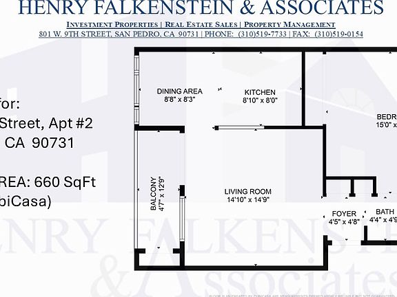 - Total interior livable area: 660 sqft