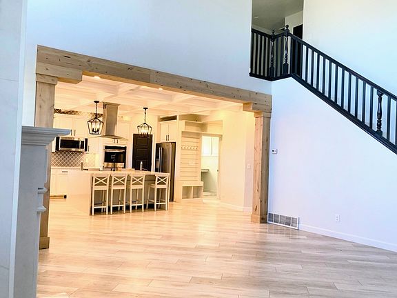 This thoughtfully designed custom home, located above the Saratoga Springs Temple, provides magnificent views of the mountains, Utah Valley, and the Lake. Every detail of the house was carefully thought out so that we could enjoy family gatherings and entertain friends. The main floor stands out in the great room with an 18-foot ceiling and a wall of windows showcasing its breathtaking views. The kitchen is a chef's dream, featuring signature appliances, a massive waterfall island, and coffer ceilings. The great room and dining room open out to a beautiful Marble fireplace with matching Marble stars. The primary suite & main office are also on the main floor. The primary suite has a large walk-in closet with built-in cabinets and drawers. Upstairs has 4 additional bedrooms including a great room. All the windows have plantation shutters. You'll have access to a circular driveway with plenty of parking space. Come and live in this beautiful area of Saratoga Springs. All utilities are included.