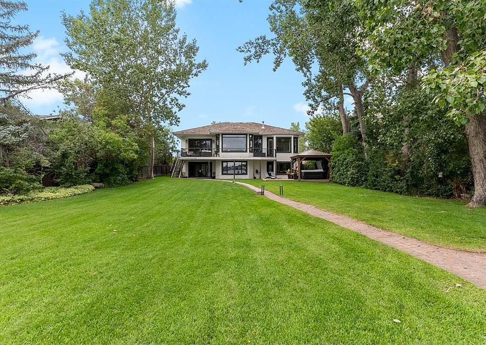 Experience lakefront luxury at one of Chestermere’s most coveted addresses. This superbly renovated walkout bungalow boasts 3,670 Sq Ft of beautifully developed living space on West Chestermere Drive. It combines timeless design with modern elegance, offering breathtaking lake views from nearly every room. Inside, soaring 10-foot ceilings and expansive windows flood the home with natural light. Italian tile, installed by a renowned European craftsman, sets the stage for exceptional finishes throughout. The heart of the home is the massive Legacy kitchen, showcasing satin black and walnut cabinetry, walnut island, striking quartz waterfall countertops, and top-tier Wolf & Thermador appliances, complete with a butler’s pantry. The kitchen flows seamlessly into the great room, anchored by a gas fireplace with a custom Italian-tile surround, and extends outdoors through patio doors to a spacious deck—perfect for entertaining or simply soaking in the lake views. The primary suite is a private retreat featuring deck access, a spa-inspired ensuite with a book-matched walnut vanity, European enamel cast iron sinks, heated tile floors, and a deluxe shower with body jets and an oversized rain head. A striking office with double black entry doors and a feature wall offers style and functionality. The walkout lower level is designed for entertaining and versatility, with a sunny family room, wet bar (with potential to convert into a second kitchen), a spacious bedroom, 1 & half bathrooms, and a large gym that could easily be reconfigured into two additional bedrooms. Outdoors, enjoy a triple-car garage. A sprawling lakefront lot with mature trees for privacy, large hot tub ready Gazebo, wonderful for entertaining, 75-ft dock, and a rare grandfathered boathouse. Meticulously crafted for those who treasure comfort with elegant sophistication and appreciate want to claim their own “little piece of paradise.” Experience the ultimate in year-round out door living in fabulous Lake Chestermere.