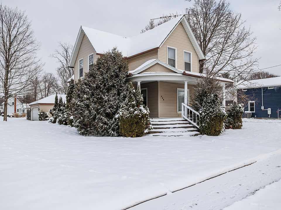 Welcome Home! Call Shelly Hope 269-274-7201. Great location, just minutes from schools, shopping, downtown restaurants and seasonal activities as well as the hospital. This 3 bedroom 2 full bath home has a lot to offer for the price point. Gorgeous original woodwork throughout, large wrap around front porch, nice size .25 acre corner lot, 2 car detached garage w/ w/built-in workshop. Main floor bedroom could be the Primary bedroom with attached bathroom and stackable laundry closet or would be a great mother-in-law suite as there are 2 additional larger bedrooms upstairs w/additional full bath as well as a smaller bonus rm. The large clean Walk-in attic could easily be finished off and made into a 4th bdrm, workout rm, office or play rm or just use it for additional storage. There is a Formal dining & Living rm as well as a Family rm and a closed in front entry way space with built in bench and coat closet. Home is being Sold As Is to settle an Estate. Hurry, this one won't last long!