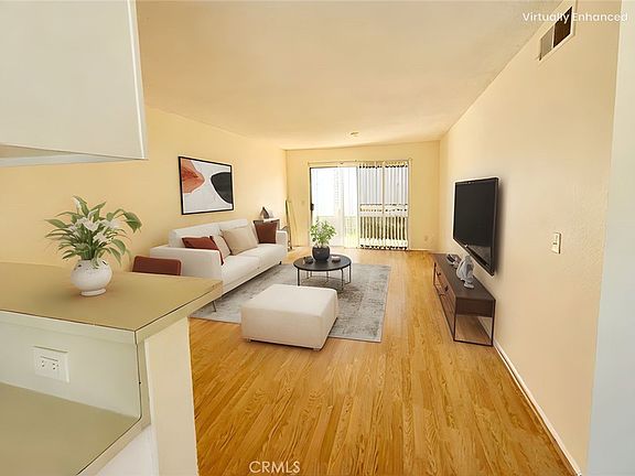 Discover this wonderful end unit one bedroom condo with no neighbors above or below located in a peaceful, gated community featuring beautifully landscaped grounds. Enjoy access to large swimming pools, a convenient laundry area, and more. This rare gem is located within the quiet complex and offers a good sized private backyard with durable vinyl fencing. Inside, you’ll find fresh interior paint and an open kitchen that looks out to the family room. The kitchen is equipped with a refrigerator, dishwasher, gas range, and oven, plus a nice sized eating area. Additional highlights include a full size bathroom, central heating and air conditioning, and a private rear bedroom in rear. Car parking space is also located at the end unit and just adjacent to the main access road. A beautiful tall palm tree outstanding in the back yard, that is the only one tall palm tree in the whole community.