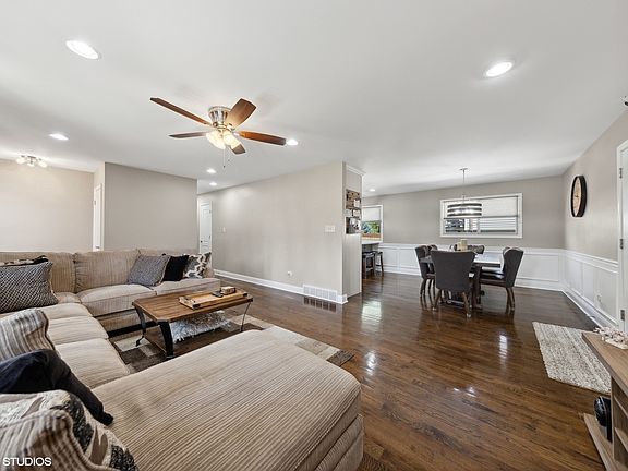 Stunning & spacious, open concept ranch home w/ full finished basement! The sunlight pours into the spacious living room w/ beautiful wood floors. 3 generously sized bedrooms on the main level that include a primary w/ ensuite & ample closet space w/ organization systems. 1 additional bedroom in the basement along w/ an office & custom bar area that's perfect for entertaining! 3 full bathrooms including 1 bath w/ walk in shower in the basement. Huge, updated chef's kitchen that features granite countertops, stainless steel appliances & a massive island w/ plenty of seating. The fenced in backyard w/ extended concrete patio is the perfect outdoor oasis. The extra deep, heated garage w/ additional pull down screen door + attic w/ pull down stairs is the icing on the cake! This house has been updated beautifully - truly nothing to do but move in! Excellent neighborhood in Stone school district. Close to highways! Recent improvements include: (2019): New tear off Roof, soffits, gutters (leaf guard), new siding, basement floor & pull down screen garage door added. (2017): New Fence, driveway, extended concrete patio in backyard, new washer & dryer, epoxied garage floor, closet organizers, camera system installed, new light fixtures, can light dimmers & entire house painted.