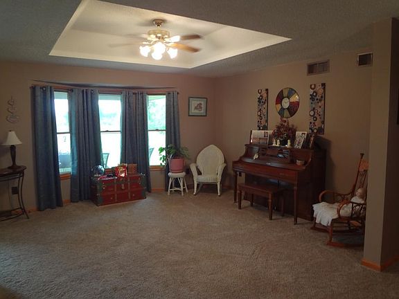 Country living 6 miles from Wal Mart. 4 bedrooms, 3 baths. 24 x 24 great room, open floor plan with vaulted ceiling. Basement has kitchen, family room, bedroom and 3/4 bath. Upstairs has all solid oak woodwork and doors, down stairs has new oak doors and trim. 30 X 40 shop partially heated with 15' shed on back. three overhead doors. Storage shed. 4.8 acres. 2 central heat and air units. A MUST SEE! All on paved road.