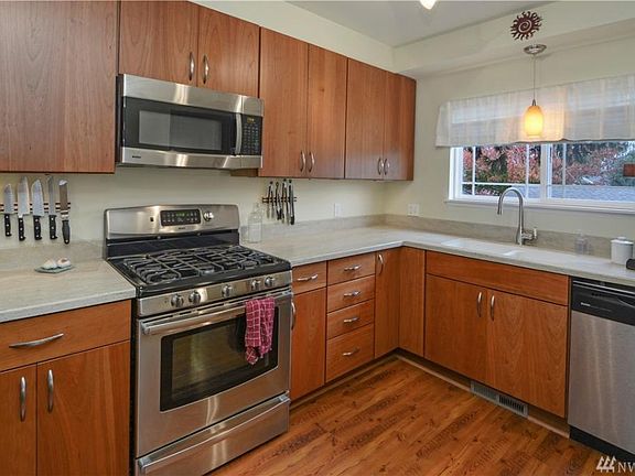This home embodies the best of the old (arched entryway/coved ceilings) along with modern amenities (newer: kitchen, roof, water-heater, and gas fireplace, over sized-2 car garage, fencing). The grounds feature two trees that pre-date the city of Seattle, and are arborist-studied. Opportunities abound for new owner to complete the basement, to add even more value.