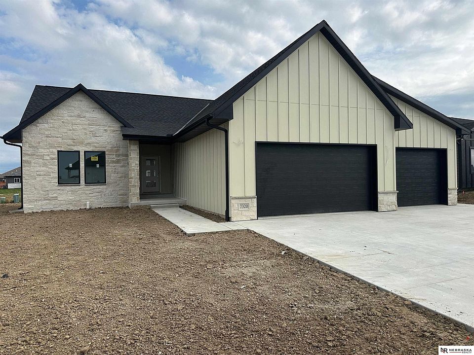 Step into over 3,000 finished square feet of refined living in this brand-new ranch-style masterpiece. With 5 spacious bedrooms, 3 full bathrooms, and a 3-car garage, this home is designed for both elegance and everyday functionality. The gourmet kitchen shines with a walk-in pantry, sleek cooktop with designer hood, cabinet-mounted oven & microwave, quartz countertops, and custom finishes that make every detail feel elevated. The open concept living room boasts coffered ceilings & beautiful built-in shelving, while the primary suite offers a spa-like retreat. Entertain with ease in the finished basement featuring a wet bar, expansive family room, 2 bedrooms, and plenty of unfinished space for storage or future expansion. Enjoy outdoor living on the covered patio or admire the stone & board-and-batten front exterior! All-electric efficiency, timeless finishes, and a prime SE Lincoln location in a fast-growing neighborhood make this home a true standout.