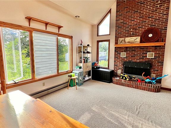 This lovingly renovated Victorian farmhouse sits quietly on nearly 12 acres of open land in East Otto, offering the perfect combination of country solitude and easy access to the Ellicottville and Springville regions—a straight-shot drive of 15–20 minutes away. Built around 1900, this 1,897-square-foot home blends historic character with modern upgrades for stylish yet practical living. Step inside to soaring cathedral ceilings and a vaulted great room anchored by a wood-burning fireplace—ideal for cozy gatherings or peaceful evenings. The kitchen shines with solid cherry cabinets, dramatic lighting, and skylights above, flowing into a formal dining room with tray ceilings and rich cherry plank floors. A first-floor bedroom, full bath with Jacuzzi tub, and a secondary den or study space complete the main level. Upstairs, two bedrooms, a full bath, and a bright sitting area overlook the perennial gardens and play lawn beyond. The property is designed for life beyond the house. Stone foundation, copper plumbing, a new boiler with hot-water heat, a water-softening system, and high-speed 5G internet are tucked into the basement for self-sufficient, comfortable living. Outside, two porches frame sweeping views, and a detached garage certified for food processing (with water and electricity) adds functionality for hobbies or home-based ventures. Riding, gardening, or simply wandering—this is countryside living at its best. With low-maintenance grounds, timeless appeal, and strong bones, 7320 East Flats Road is ideal as a full-time family retreat, vacation home, or lifestyle investment.