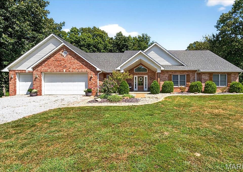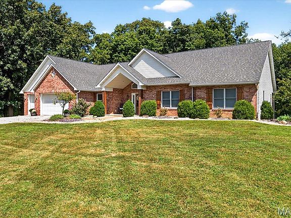 Gorgeous Custom Built 4 bed/3.5 bath home nestled on ~7.67 scenic & private acres offers over 4600 sqft of living space. As you approach the home note the beautiful brick front, charming covered front porch & tidy landscaping. Step inside to the Beautiful vaulted foyer that welcomes you w/an open concept main living space. Start in the Living room overlooking the fabulous atrium windows allowing loads of natural light to grace the LVP floors & stone fireplace with built-ins. Make your way to the kitchen which boasts a center island w/breakfast bar, ample cabinets w/crown molding, breakfast area w/sliding glass door leading to the spacious wood deck offering scenic views. In the Formal dining room you will notice the unique ceilings and awesome angles throughout the main space. Stop by the Large laundry room w/sink and lots of cabinets & 1/2 bath before making your way down the hall to the Primary Suite where a retreat awaits you! Enter to find vaulted ceilings, large walk-in closet, spa-like bath w/double vanity, soaking tub, extra large walk-in shower & private deck overlooking the backyard. 2 generously sized bedrooms w/jack-n-jill bath & loads of closets round out the main level. Make your way down to the lower level to find a HUGE family room, 4th bed, office area, full bath, rec room, plenty of storage areas & door leading you to the stamped & stained concrete patio with built-in firepit. Energy efficient concrete walls & geo-thermal means extremely low utilities!