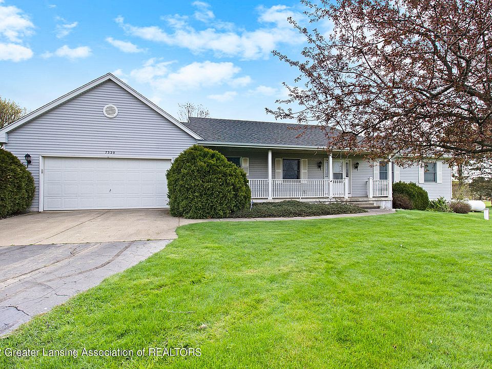 Peaceful and serene country living at its finest, this wonderful 3 Bedroom, 2 full bath home is in Grand Ledge School District. Home features a primary bedroom suite with a walk-in closet, open floor plan with an eat-in kitchen, plus a formal dining room, and the living room has vaulted ceilings. You will love the covered front porch and the large covered back deck that give you plenty of room to entertain or just sit and watch nature. Full basement with egress windows and stubbed in bath area, just waiting to be finished.