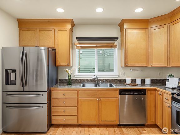 No HOA! Attached garage! Just steps from stunning Lincoln Park w/mile of beach access and Colman Pool overlooking the Sound. Welcome to this idyllic townhome w/wide open floor plan. Top floor has vaulted ceilings with two spacious primary en-suite bedrooms w/walk-in closets and luxury flooring. This home has 3 full bathrooms! Large capacity washer and dryer. Spacious open kitchen for entertaining w/fairly new french door fridge and gas cooking. Private 3rd bedroom/office on main floor. Radiant heating throughout. New carpet! Fully-fenced low maintenance yard w/ patio & large shed – (art studio or storage). Attached garage. Close to Rapid Ride bus & neighborhood cafes, restaurants, parks, & beaches. This West Seattle haven has it all!