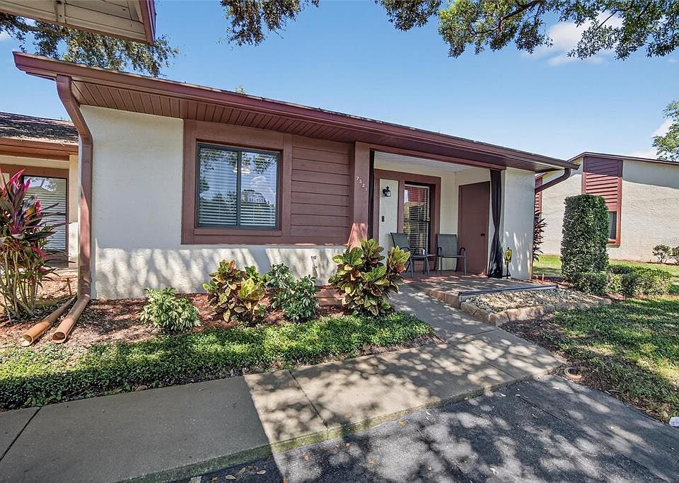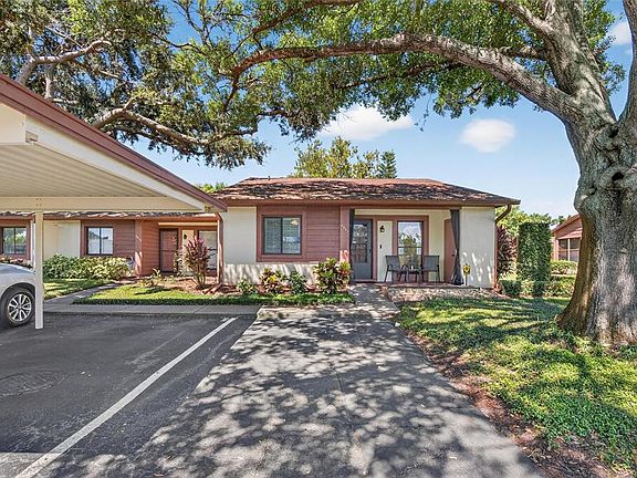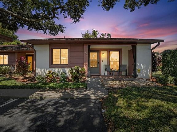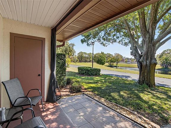 Front porch Water view. Wide Open and bright. Clean. Well maintained. Updated. 55+ condo in Beautiful Beacon Woods Golf Course Community. Ceiling fans throughout. Newer appliances all matching. Lots of upgraded Kitchen lighting with dimmer. New front patio screen. Glass/Screen front storm door. Ring door bell. Remote control Living room and Lanai ceiling fan/light. Upgraded Digital programmable thermostat. Rear camera. Assigned covered parking right out front. Visitor parking available. Large beautiful mature front shade trees. Pet friendly. Lawn care, Trash, exterior painting, roof, Cable and internet included in HOA. Sit back and relax. Watch the birds in this quiet nature preserve as you watch the sunset from your front porch.