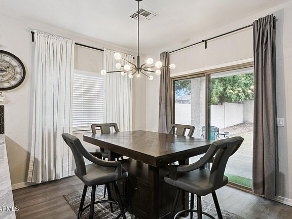 Tucked away on a peaceful cul-de-sac, this charming home offers comfort and convenience—just over a mile from Westgate Entertainment District, Desert Diamond Arena, and Cardinals Stadium. The open, split floor plan features high ceilings, wood laminate floors, and abundant natural light. The kitchen offers a generous island with 42'' cabinetry, a breakfast bar, pantry, and newer stainless-steel appliances. The primary suite includes modern light-up mirrors, dual sinks, a soaking tub, separate shower, and a roomy walk-in closet. Step outside to a covered patio overlooking green grass, mature trees, and a wide 10' RV gate. Fantastic curb appeal and an ideal Glendale location make this home move-in ready and easy to love!